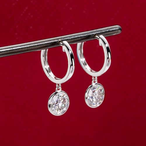 14K White Gold Dangle Drop Hoop Earrings 2 CT Moissanite Real Solid Gold Hypoallergenic Earring for Women Men Her 1