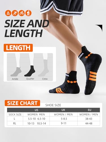 Men's ankle running socks size 9-13,quarter socks with arch support,comfortable and anti-slip sports sock,6 pack 3