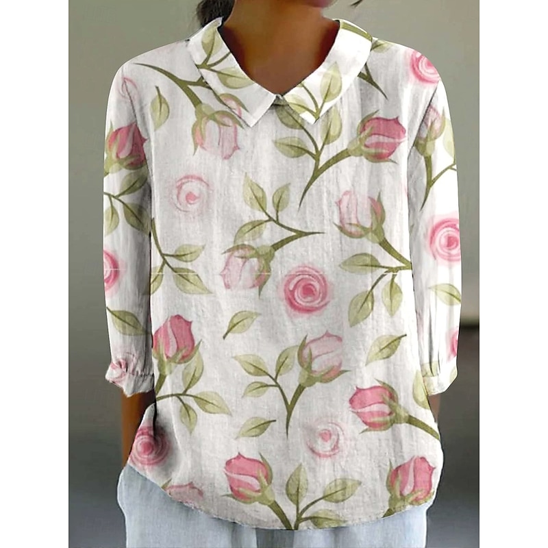 More information about Women's Blouse Floral Graphic Abstract Vintage Tropical Stylish Short Sleeve Shirt Collar Regular Tops Work Daily Print Blush Pink Black Light Green Red Light Blue Summer Spring