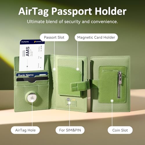 Brand: XquiziFitColor: GreenMaterial: LeatherStyle: ModernPattern: SolidIntegrated Airtag Hole: This travel passport holder features a built-in Airtag slot, allowing you to securely attach your Airtag tracker (Airtag not included). Never worry about losing your passport again and enjoy your trip.Advanced RFID Protection: Crafted with advanced RFID-blocking materials, this passport wallet protects your personal information from unauthorized scans. Safeguard your credit cards, passport, ID, and other sensitive items with enhanced security.Luxurious Full-Grain Leather Craftsmanship: Crafted from premium full-grain leather, each passport holder natural grain variations for truly unique character.The hand-stitched details and its soft texture ensure the durability of this passport cover, which combines elegance and functionality to protect your passport and enhance your travel style.Compact & Practical Design: This passport holder can store air ticket, passport, cards and other items. Its detachable magnetic card holder can be firmly attached to the mobile phone (with a phone case with magnetic function). Enhanced magnetic attraction and anti-slip protection design.Back zippered pocket organizes coins.Sleek Travel Essentials: Measuring 5.5L x 3.9W x 0.3T, this ultra-slim passport holder combines featherlight portability with discreet organization. Easily slips into pockets/bags without bulk. The ideal present for modern travelers valuing style + security—keeping boarding pass, cards, and passport neatly accessible yet protected. Perfect for everyday use. High quality materials and excellent craftsmanship ensure long-lasting durability.