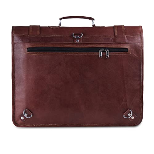 • ✔Storage and Functionality – This convertible leather bag is designed for ultimate functionality with super storage equipped with Size of 18” width x 13” height x 5” depth, Dedicated 2 padded sleeves 1 at internal front 1 at internal back (Fits 2 laptop up to 18 inches) Main compartment does have enough space for other files / folders even you can carry overnight clothes with 1 big pocket, 3 zippered compartment 1 internal 1 outside front and 1 backside of bag to keep things Handy.