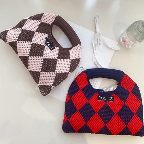 Checkered Crossbody Bag Knitted Tote Bag Soft Checkered Tote Bags Trendy Alt Hand Bags Multicolor Grid Block Woven Purse 2025 2