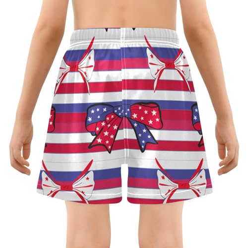 Independence Day American Bows (3) Boys Swim Trunks with Compression Liner Quick Dry Bathing Bottom Kids Beach Shorts 4
