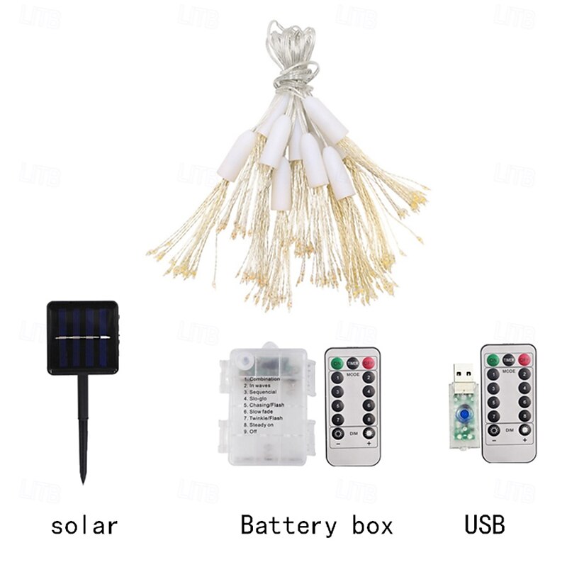 $28.99 - 200LED Decorative Fireworks Light Dandelion Explosion Star Light String Design Copper Wire Light String Curtain Light Optional Solar Energy Battery Box USB 1PC 2025. Shop for cheap Solar String Lights online? Buy at lightinthebox.com on sale today!