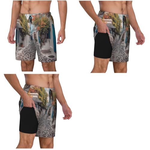 Men's Swim Trunks Quick Dry Board Shorts Greece Street Beach Shorts with Pocket Bathing Suits for Men 1
