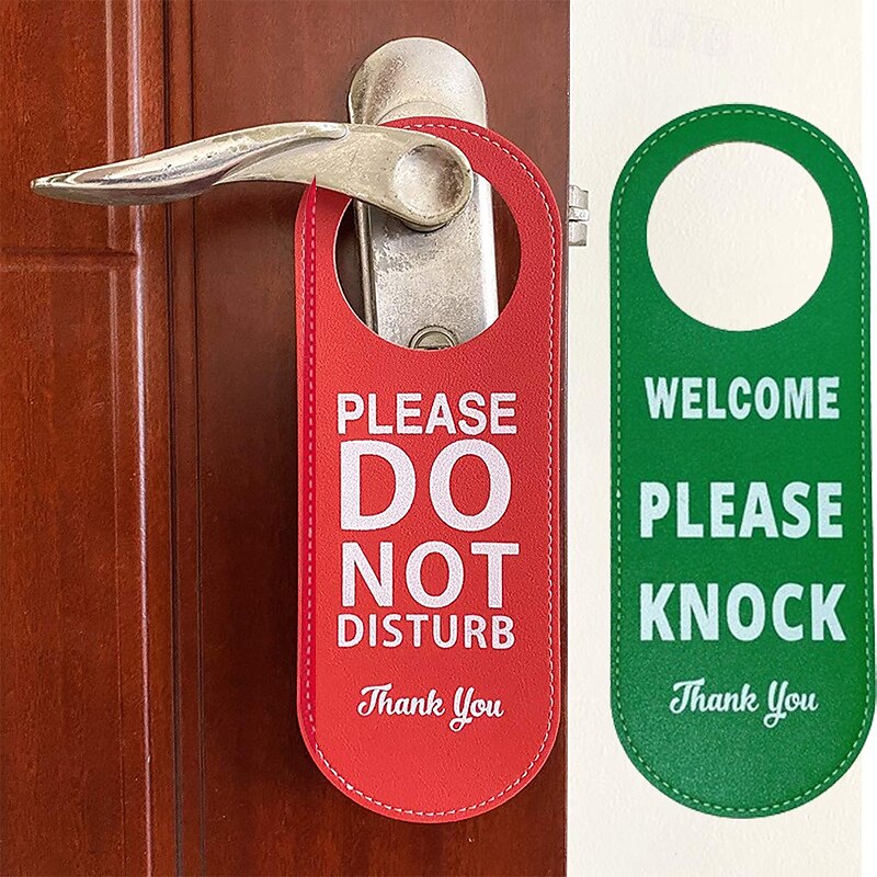 HOT ! Do Not Disturb Sign Door Hanger Sign PU Leather Welcome Please Knock Sign Ideal for Offices Clinics Law Firms Hotels or during Therapy Massage Spa Counseling Sessions