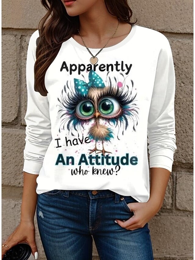 More information about Women's T shirt Long Sleeve Crew Neck Long Sleeve Tunic Animal Letter Modern Casual Regular Tops Daily Weekend Print Black White Yellow Red Sky Blue Fall Winter Prefall