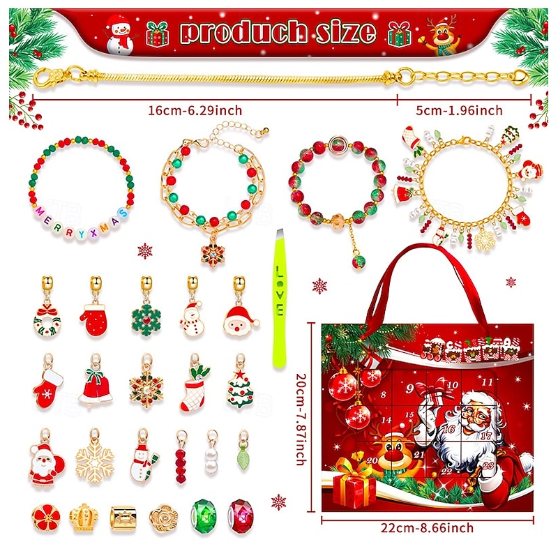 HOT ! Christmas Advent Calendar Bracelets 2025 for Girls 24 Days Xmas Countdown Calendar DIY Jewelry Making Kit Gift Charm Beads Bracelets for Kids Teens Women