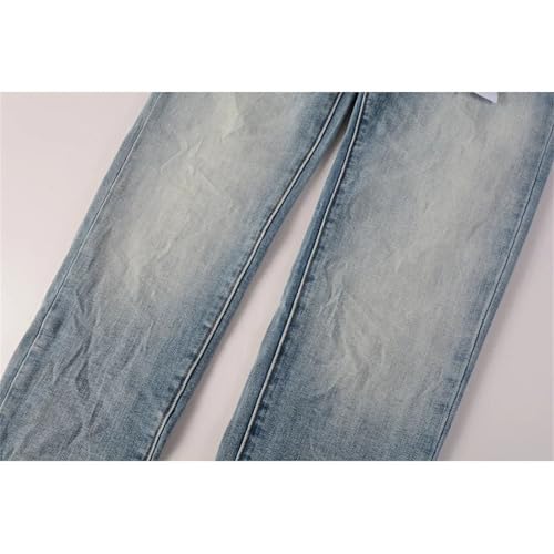 Mnjyihy Men Blue High Street Distressed Jeans High Stretch Skinny Button Fly Straight Leg Ripped Jeans Pants 7