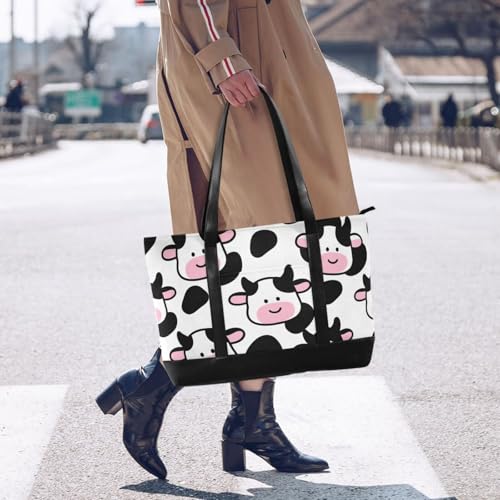 Cute Cow Black White Pink professional women laptop tote bag with zipper tote bag with zipper for women work with 4