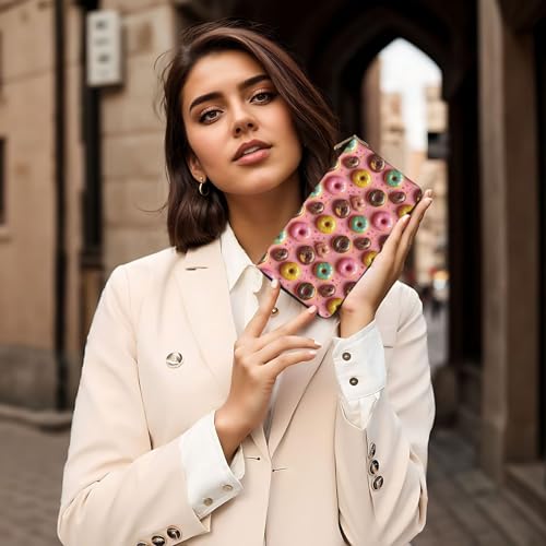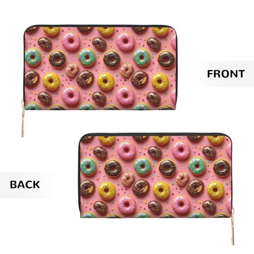 Leather Thin Slim Wallets for Women & Men - Pink Donut Cute Print Card Wallet Holder with Zipper 7