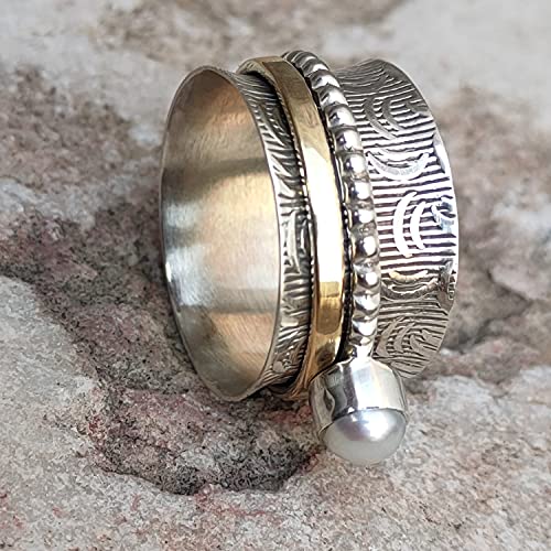 More information about 925 Pure Silver Spinner Ring, Worry Ring, Anxiety Ring, Thumb Ring, Sterling Silver Band, Gift for Her, Birthday Gift, Pearl Spinner Ring, Silver Band