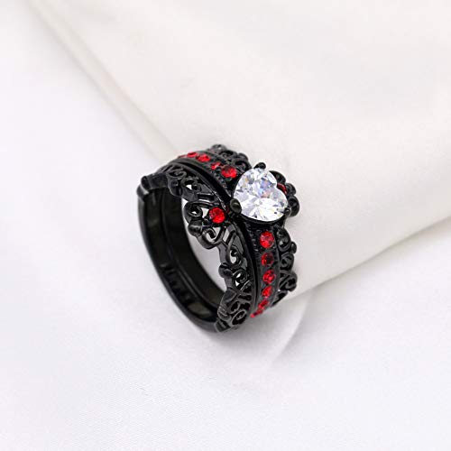 Couple Rings Black Plated Heart Red Cz Womens Wedding Ring Sets Crown Ring Titanium Man Wedding Bands(Please Buy 2 Rings for 1 Pair) 6