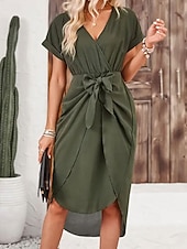 More information about Women's Midi Dress Sheath Dress Modern Outdoor Vacation Holiday Regular Fit Plain Short Sleeve V Neck Army Green Dark Green Fall