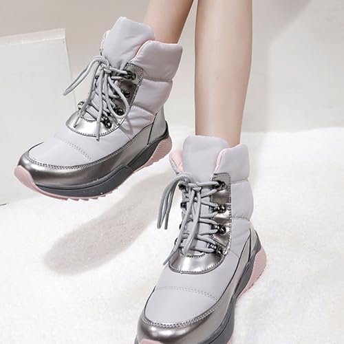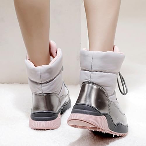 Women's thermal Fur Lined Lace-up Waterproof Mid-Calf Boots Lightweight Slip on cushy Non-slip Winter Snow Boots for Cold Weather Camping Work Hiking Wear