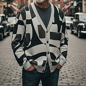 More information about Christmas Men's Geometic Plaid / Striped / Chevron / Round Sweater Cardigan Sweater V Neck Retro Vintage Casual Outdoor Home Party Buckle Long Sleeve Fall Winter Khaki Grey