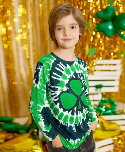Unisex Kids St. Patrick's Tie Dye Irish Clover Long Sleeve Shirt Shamrock Green Sweatshirt 4-12 Years 6