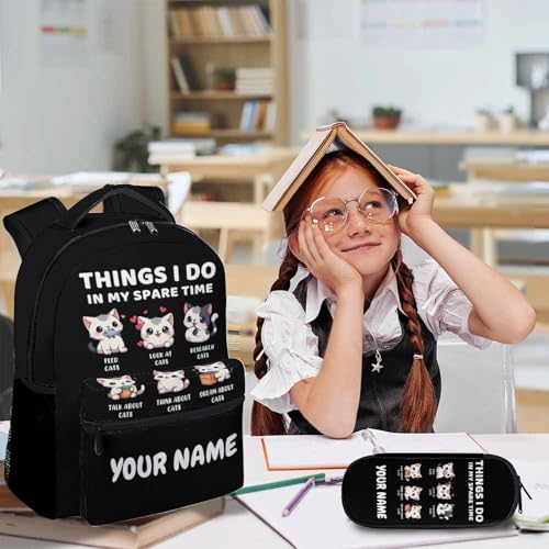 Set of 3 Custom Cat Backpack for Boys Girls, Cute Kids Book Bag Gift Back to School, Animal Theme Backpack with Lunch Box and Pencil Case for Preschool Elementary Kindergarten 1
