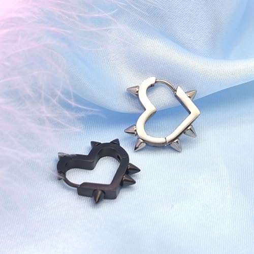 HOT ! Y2K Spiky Heart Hoop Earrings for Women - Emo Punk Earrings, Black Spike Earrings - Stainless Steel Hoop Earrings, Gothic Jewelry