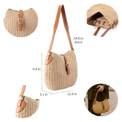YXILEE Handmade Straw Shoulder Bag for Women,Summer Beach Bag,Adjustable Strap 6