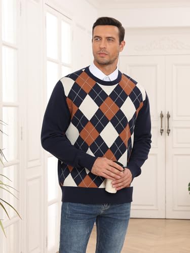 • Stylish Argyle Design: The men's crewneck sweater features a classic argyle pattern, bringing a vintage style and smart appearance to your winter wardrobe. Great birthday, holiday presents for husband, families, friends.