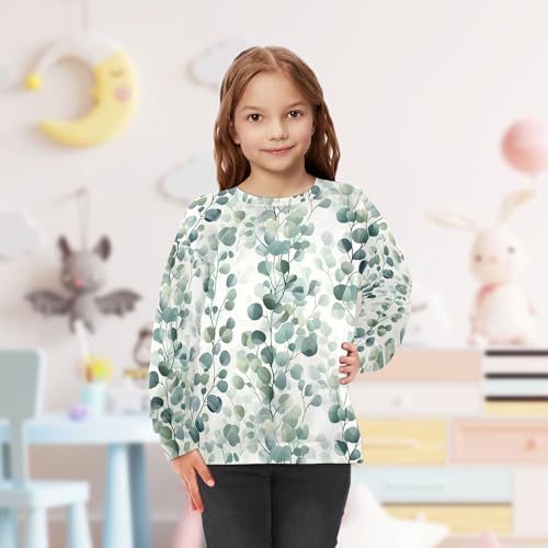 JUNZAN Cartoon Eucalyptus Leaf Kids Girls Hooded Sweatshirt Fleece Hoodies for Girls Athletic 4T 6