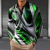 Men's Abstract Geometic Polo Long Sleeve Polo Shirts Lapel Casual Outdoor Street Athleisure Daily Wear 3D Print Buttons Spring Fall Winter Red Purple Green 9