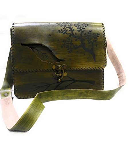 Vintage Premium Tree and leaf Pattern Crazy Horse Leather Cross-body Handmade Shoulder Bag Medium size 4
