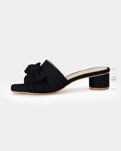 Coutgo Womens Bow Slides Sandals Wide Width Slip On Chunky Low Heels Square Open toe Elagant Summer Shoes 1