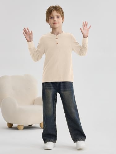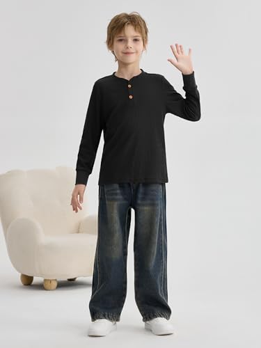 • User-Centric Design: These boys waffle henley knit thermal tops feature a round neck and front buttons, adding a touch of style and making them easy to put on and take off; thoughtfully designed with a 2-button placket, the Henley neckline allows young children to dress themselves easily, reducing parental assistance needed