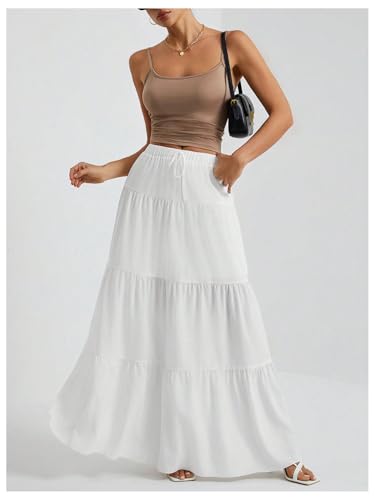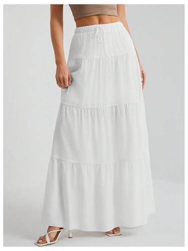 • Tiered Layered, Elastic High Waist, Drawstring Maxi Skirt, Layered Ruffle Skirt, Vacation Skirts