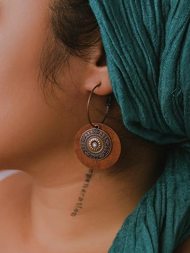 • BOHO WOOD & METAL DESIGN: These earrings combine earthy wood and antique-style metal accents for a rustic, bohemian look that’s perfect for any casual or festival outfit.
