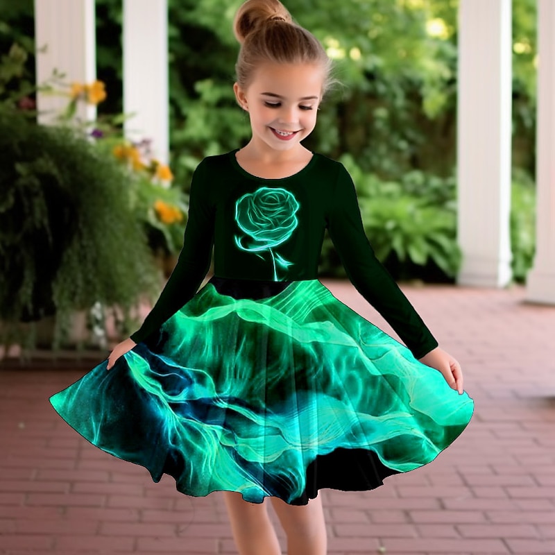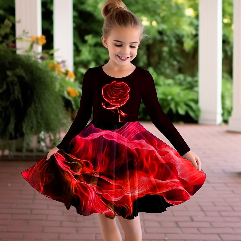 More information about Girls' 3D Rose Dress Long Sleeve 3D Print Fall Winter Vacation Sports & Outdoor Daily Cute Casual Beautiful Kids 3-12 Years Casual Dress A Line Dress Above Knee Regular Fit