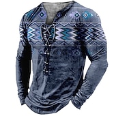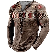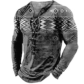 More information about Mens Graphic Shirt Tee Collar Green Blue Coffee Gray 3D Print Outdoor Street Long Sleeve Lace Up Clothing Apparel Boho Designer Casual Native American Cotton