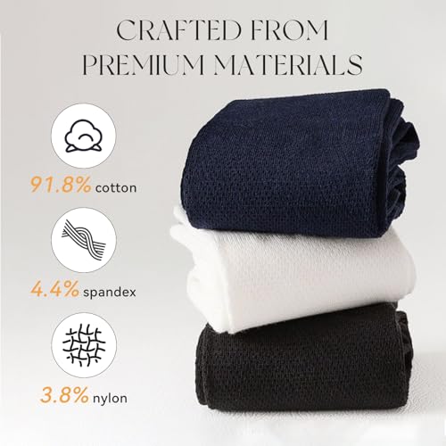 • 【Flexible Fit】: Made from 91.8% cotton, 4.4% spandex, and 3.8% nylon, these socks stretch easily to fit your legs without feeling tight, ensuring comfort all day long.