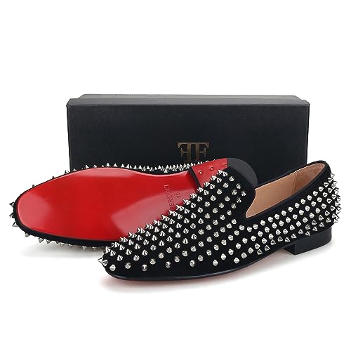 More information about FERUCCI Men Black Velvet Slippers Loafers Flat with Silver Spikes