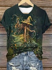 More information about Halloween Women's T shirt Witch Graphic Vintage Stylish Classic Short Sleeve Crew Neck Round Neck Regular Tops Daily Weekend Print Black Dark Green Fuchsia Green Summer Spring Fall