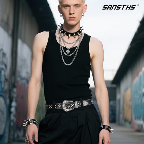 More information about SANSTHS Women Rhinestone Belt for Jeans, Men Western Cowgirl Bling Studded Belt Faux Crocodile Grain Leather