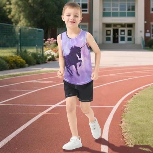 Boys' Tank Top Shirt Unicorn and Purple Nebula Sleeveless T-Shirts