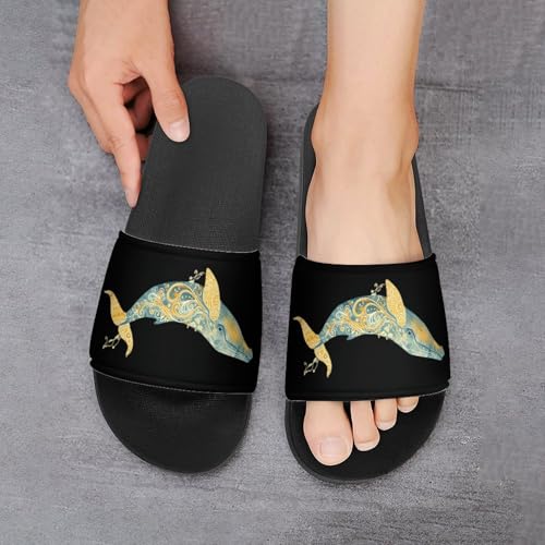 HOT ! Blue Whale Ocean Non Slip Slides Sandals for Women Men Quick Drying Shower Shoes for Bathroom Pool Beach