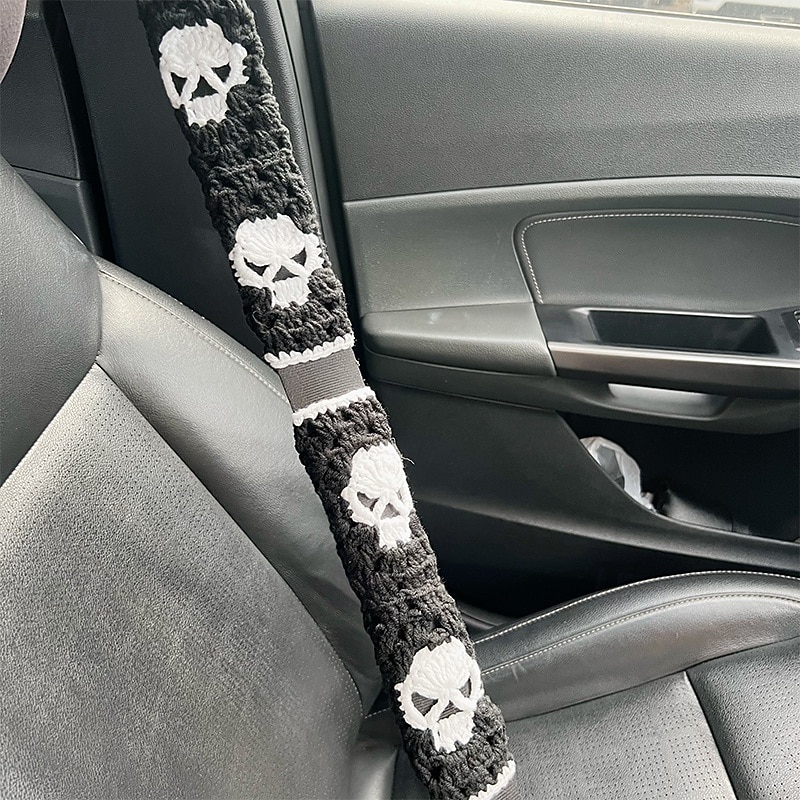 3-Piece Set Halloween Skull Crochet Car Steering Wheel Cover - Handmade Warm & Non-Slip Fabric Accessory for Vehicle Interior 6