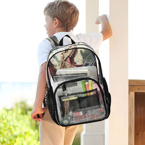 Dinosaur Fire Clear Backpack Heavy Duty See Through Transparent PVC BookBag for Kids Boy Girl School Work 1