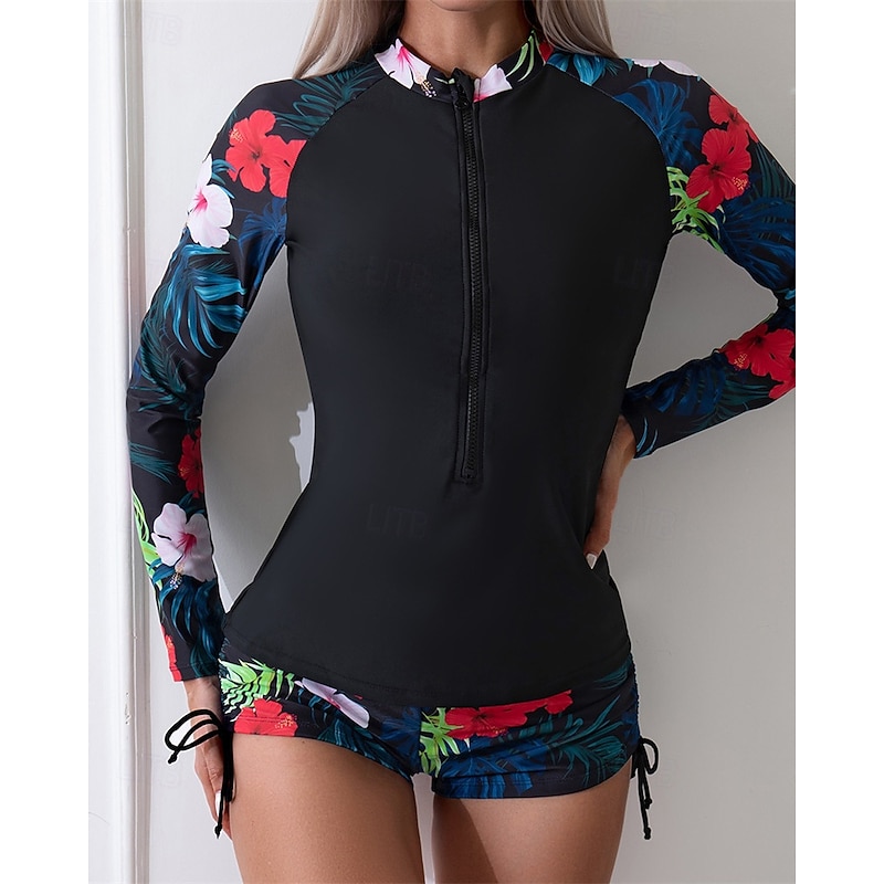 $26.99 - Women's Rash guard Swimsuit Lightweight Long Sleeve Swimwear Swimsuit 2 Piece Front Zip Swimming Surfing Beach Water Sports Floral Patchwork Printed Summer Spring Autumn 2025. Shop for cheap Rash Guards online? Buy at lightinthebox.com on sale today!