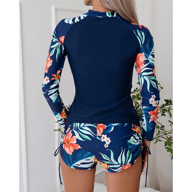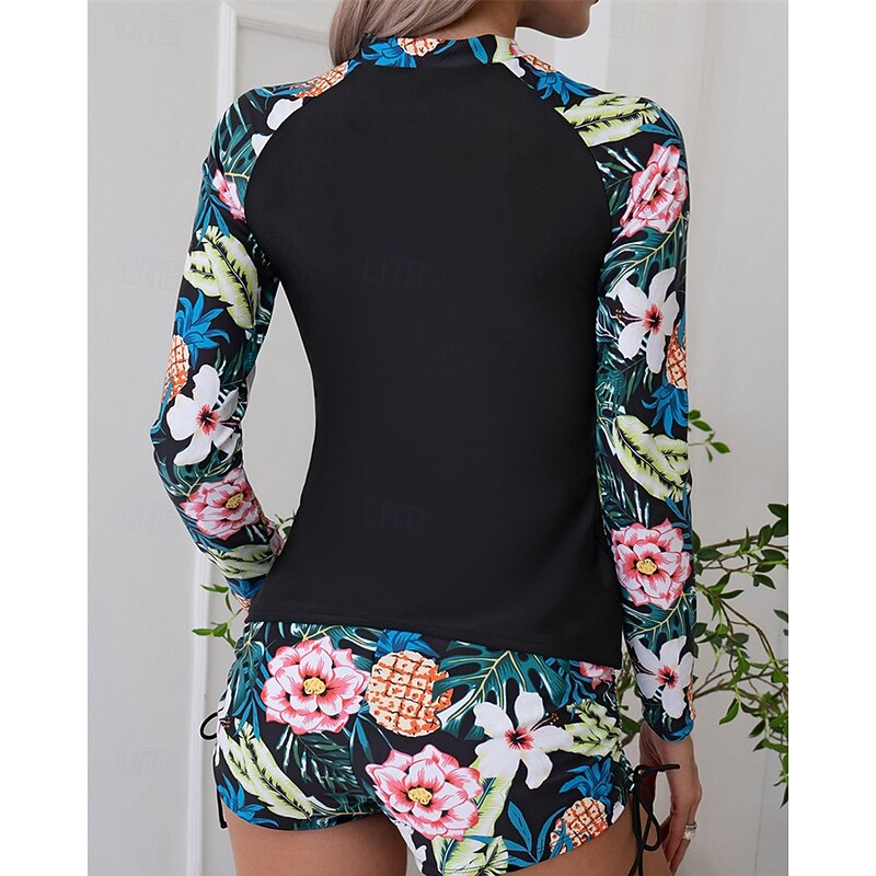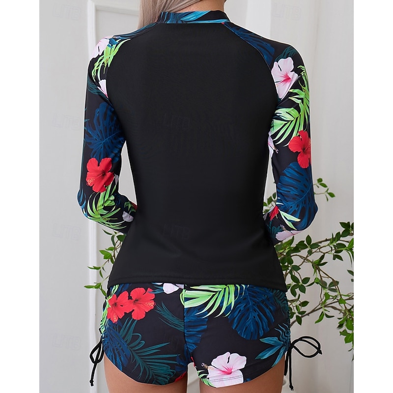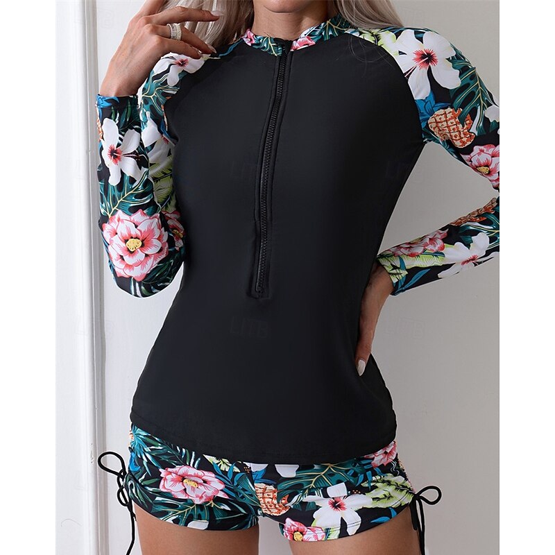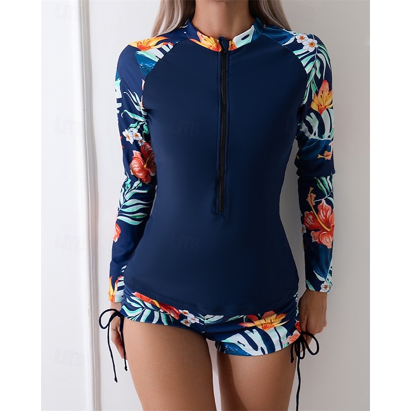 More information about Women's Rash guard Swimsuit Lightweight Long Sleeve Swimwear Swimsuit 2 Piece Front Zip Swimming Surfing Beach Water Sports Floral Patchwork Printed Summer Spring Autumn