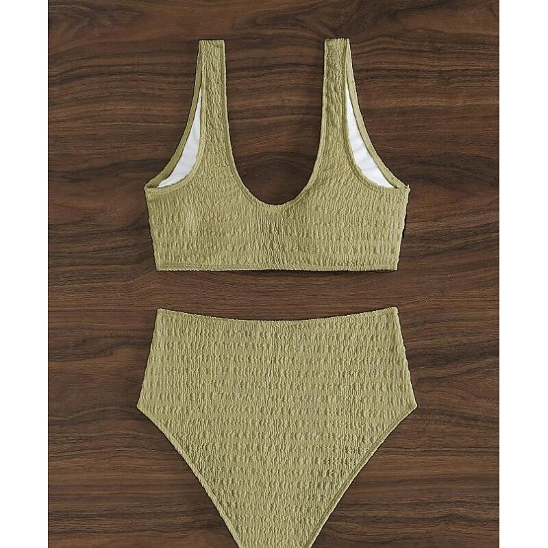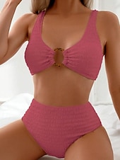 More information about Women's Swimwear Bikini 2 Piece Briefs Swimsuit Backless Slim Vacation Beach Wear Solid Color V Neck Sleeveless Bathing Suits