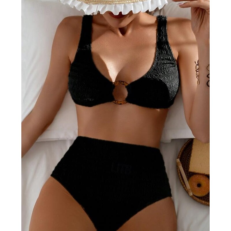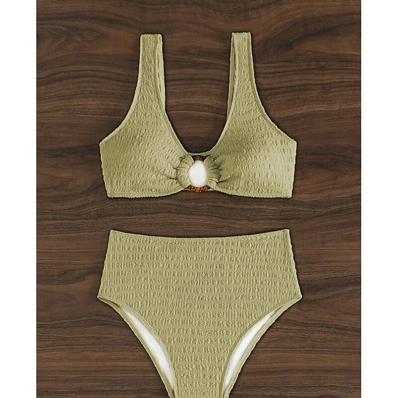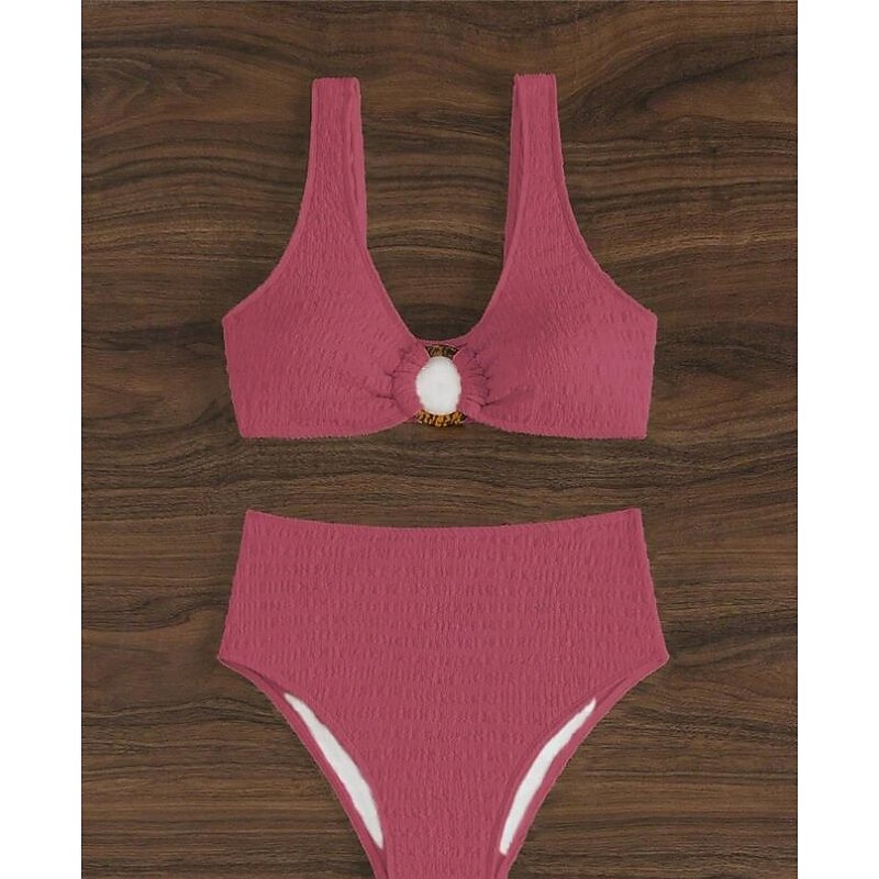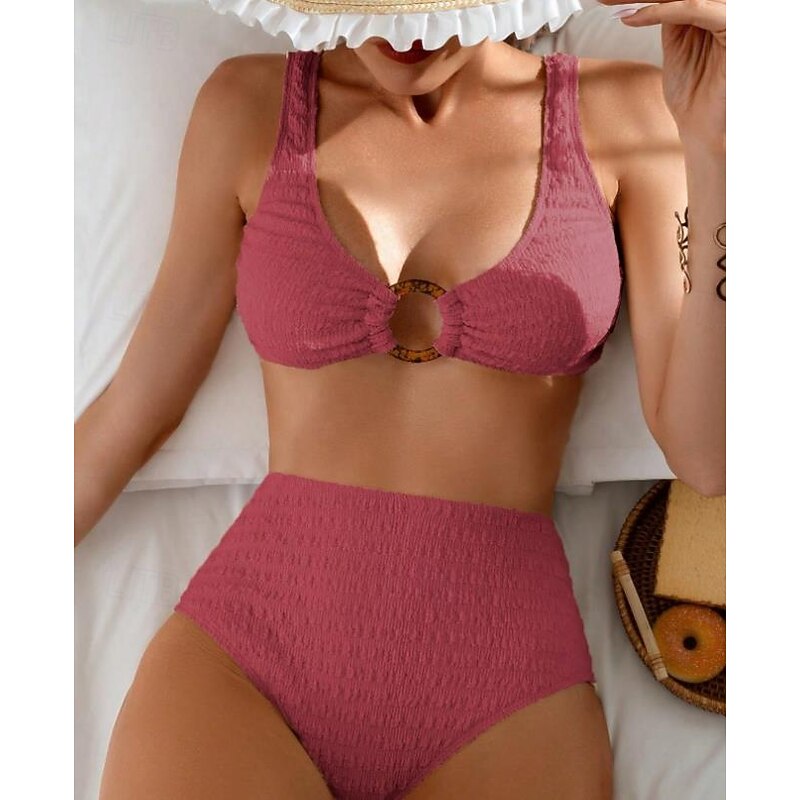 HOT ! Women's Swimwear Bikini 2 Piece Briefs Swimsuit Backless Slim Vacation Beach Wear Solid Color V Neck Sleeveless Bathing Suits