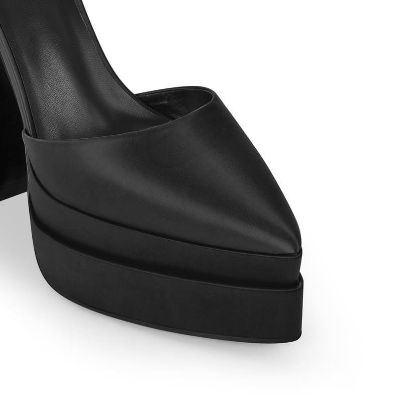 • Material: The thick bottom heels are made of satin and leather, which is smooth and silky to the touch and has a soft texture. It also features a non-slip design that.
