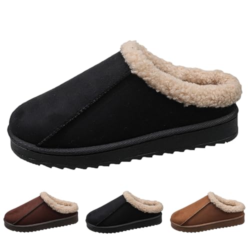 HOT ! Womens Slippers Fleece Fuzzy Lined Memory Foam House Shoes for Indoor Outdoor Suede Leather Slipper Cozy Shoes with Plush Collar Women Platform Anti-Slip Warm Winter Fluffy Slippers