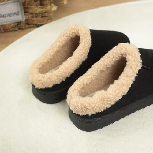 Womens Slippers Fleece Fuzzy Lined Memory Foam House Shoes for Indoor Outdoor Suede Leather Slipper Cozy Shoes with Plush Collar Women Platform Anti-Slip Warm Winter Fluffy Slippers 6