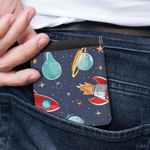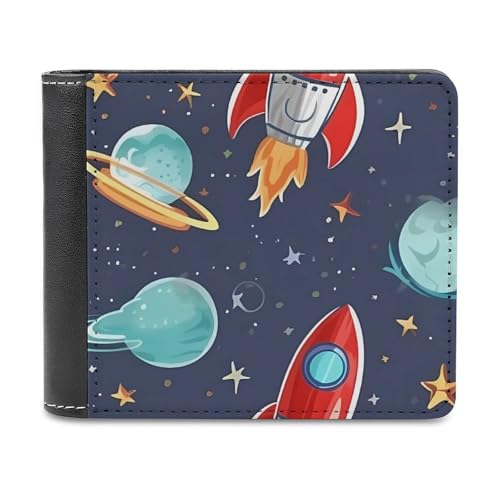 HOT ! Rocket Clipart Space Ship Wallet for Men & Women Ultra Slim PU Leather Bifold Wallet, Credit Card Holder for Travel